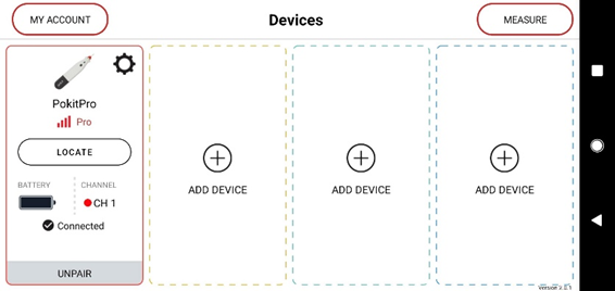 Step 4: In the Pokit App, navigate to the Devices screen, make sure you are signed into your account. The button on the top left of the screen should indicate “MY ACCOUNT” to confirm you are logged in.